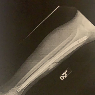 The car accident was September 30th, where I should have died and it was considered a “miracle“ since I am the sole survivor of The crash and two people died one was my girlfriend who I feel is still with me. I just got these X-Rays at my appointment today. The doctor asked me to stand up and I actually could stand on my leg. Look at how much bone growth there is. I have 2 metal rods 1 in the thigh and 1 for my shin.