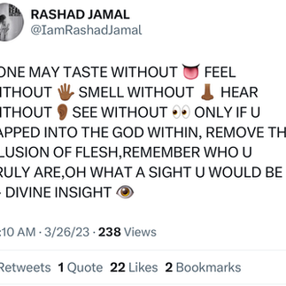 TAKE A LOOK AT THE PODCAST, LIVE LECTURES, MUSIC, BOOKS, MERCHANDISE AND MORE BELOW. ALSO BE SURE TO FOLLOW RASHAD JAMAL ON ALL SOCIAL MEDIA PLATFORMS BY CLICKING THE SOCIAL MEDIA LINKS AT THE TOP OF THIS PAGE. FEEL FREE TO BROWSE THROUGH THIS ESOTERIC CONTENT. HOWEVER, THIS INFORMATION IS NOT FOR EVERYBODY. NEW DOWNLOADS ARE CONSTANTLY BEING UPDATED SO BE SURE TO CHECK BACK FOR MORE. ALL IS BEING REVEALED.